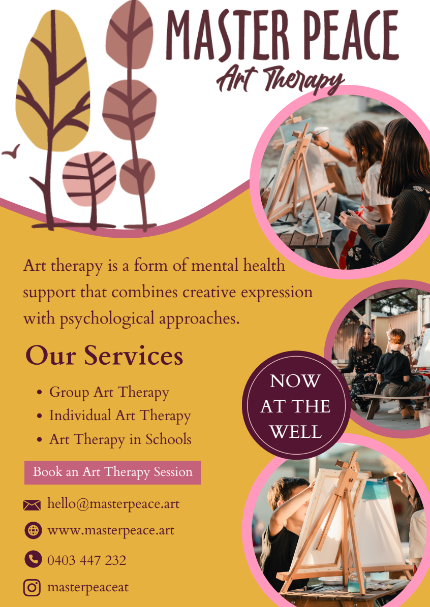 Art Therapy In a gentle small group environment our art therapist Shaley uses a variety of mediums to help upper primary aged children express their feelings and work though issues. The emphasis is not on creating prefect art works but rather on the children using creativity to help build resilience and understand their emotions. Can assist with trauma like domestic violence, anxiety, behavioural issues and more.