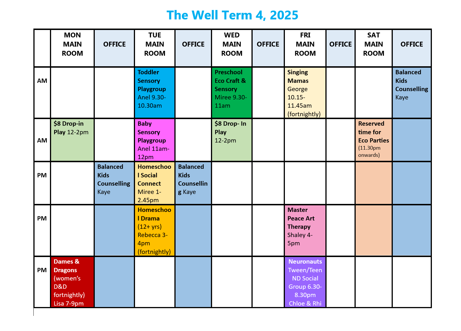 Homeschool Connect – A social group for homeschooling families to meet, learn and play together. Indoor/outdoor activities, STEM, sensory and more. Tea/coffee/cordial provided, BYO snacks. Facilitated by Miree from Green Earth Kids.